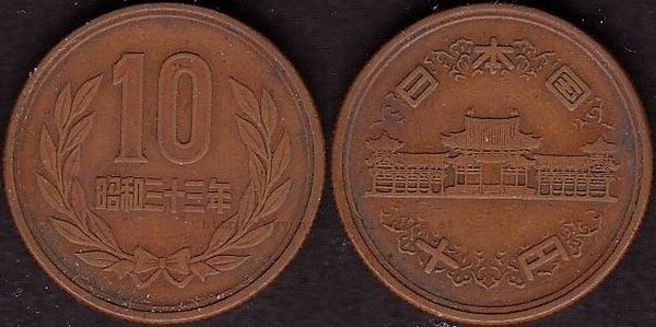 10 Yen 1951, 10 Yen 1952, 10 Yen 1953, 10 Yen 1954, 10 Yen 1955, 10 Yen 1957, 10 Yen 1958, 10 Yen 1959, 10 Yen 1960, 10 Yen 1961, 10 Yen 1962, 10 Yen 1963, 10 Yen 1964, 10 Yen 1965, 10 Yen 1966, 10 Yen 1967, 10 Yen 1968, 10 Yen 1969, 10 Yen 1970, 10 Yen 1971, 10 Yen 1972, 10 Yen 1973, 10 Yen 1974, 10 Yen 1975, 10 Yen 1976, 10 Yen 1977, 10 Yen 1978, 10 Yen 1979, 10 Yen 1980, 10 Yen 1981, 10 Yen 1982, 10 Yen 1983, 10 Yen 1984, 10 Yen 1985, 10 Yen 1987, 10 Yen 1988, 10 Yen 1989