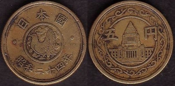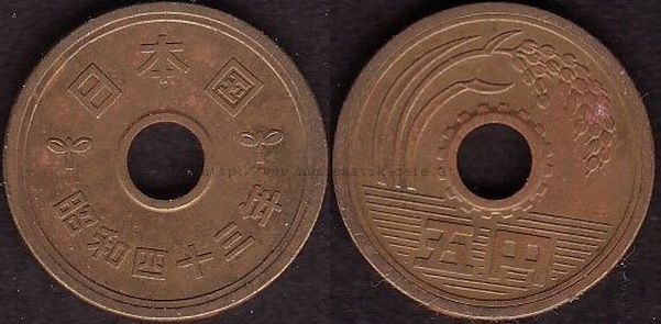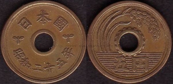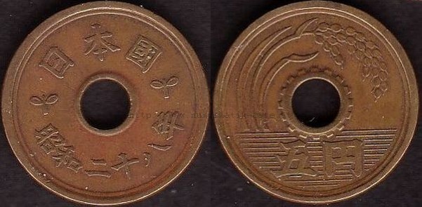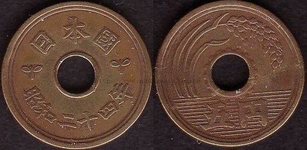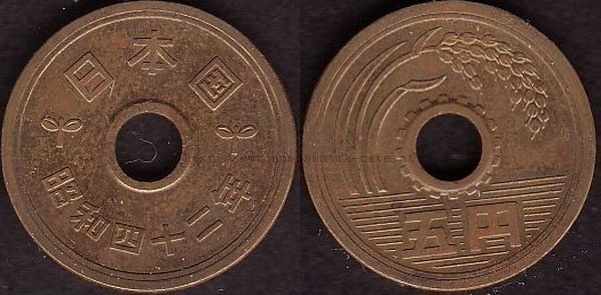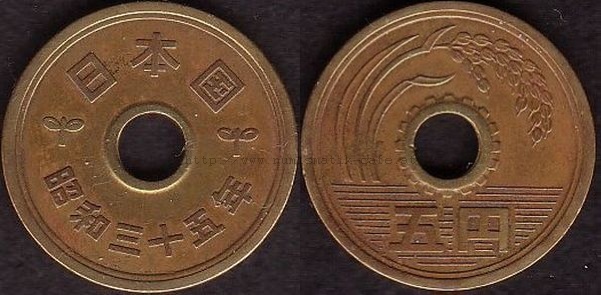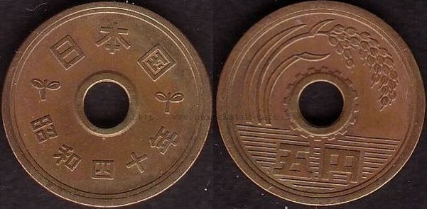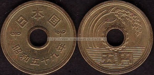 5 Yen 1930 RRR, 5 Yen 1948, 5 Yen 1949 Typ 1, 5 Yen 1949 Typ 2, 5 Yen 1950, 5 Yen 1951, 5 Yen 1952, 5 Yen 1953, 5 Yen 1957, 5 Yen 1958, 5 Yen 1959, 5 Yen 1960, 5 Yen 1961, 5 Yen 1962, 5 Yen 1963, 5 Yen 1964, 5 Yen 1965, 5 Yen 1966, 5 Yen 1967, 5 Yen 1968, 5 Yen 1969, 5 Yen 1970, 5 Yen 1971, 5 Yen 1972, 5 Yen 1973, 5 Yen 1974, 5 Yen 1975, 5 Yen 1976, 5 Yen 1977, 5 Yen 1978, 5 Yen 1979, 5 Yen 1980, 5 Yen 1981, 5 Yen 1982, 5 Yen 1983, 5 Yen 1984, 5 Yen 1987, 5 Yen 1988, 5 Yen 1989