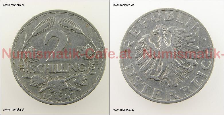 2 Schilling 1931 Mozart, 2 Schilling 1946, 2 Schilling 1947, 2 Schilling 1947, Dr. Karl Lueger, Engelbert Dollfuss 1934, Franz Schubert 1928, Ignaz Seipel 1933, J. B. Fischer von Erlach 1937, Joseph Haydn 1932, Prinz Eugen von Savoyen 1936, Theodor Billroth 1929, Walther von der Vogelweide ...