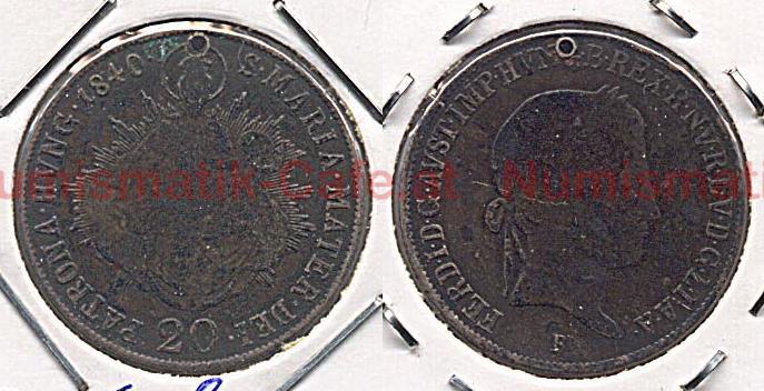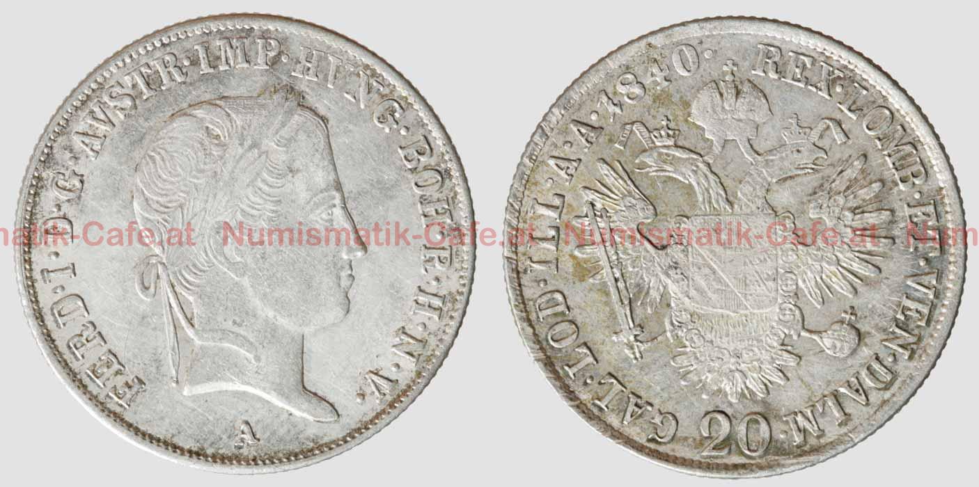 20 Kreuzer 1835 C (Prag), 20 Kreuzer 1836 A (Wien), 20 Kreuzer 1837 B (Kremnitz)..., 20 Kreuzer 1840 A, 20 Kreuzer 1840 B Kremnitz (..., 20 Kreuzer 1841, 20 Kreuzer 1841 A, 20 Kreuzer 1842 M (Mailand), 20 Kreuzer 1843 A (Wien), 20 Kreuzer 1845 M (Mailand), 20 Kreuzer 1846 M (Mailand), 20 Kreuzer 1848 A