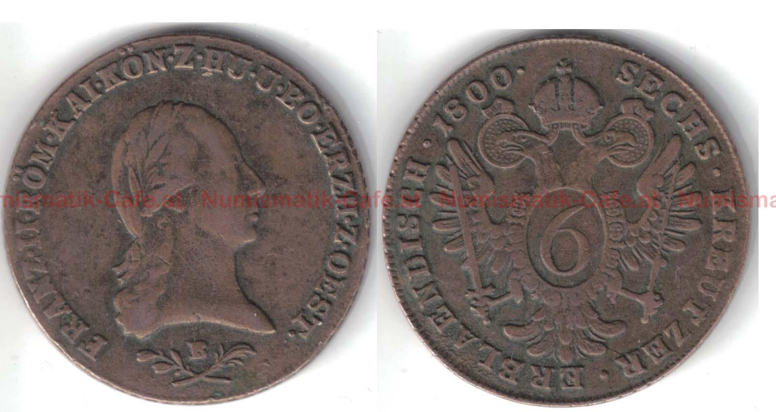 Um die Diashow zu starten, klicke auf einen der Bildnamen:6 Kreuzer 1800 A Wien, 6 Kreuzer 1800 B Kremnitz, 6 Kreuzer 1800 C = Prag, 6 Kreuzer 1800 E (Siebenbürgen), 6 Kreuzer 1800 F, 6 Kreuzer 1800 vermutlich B ...