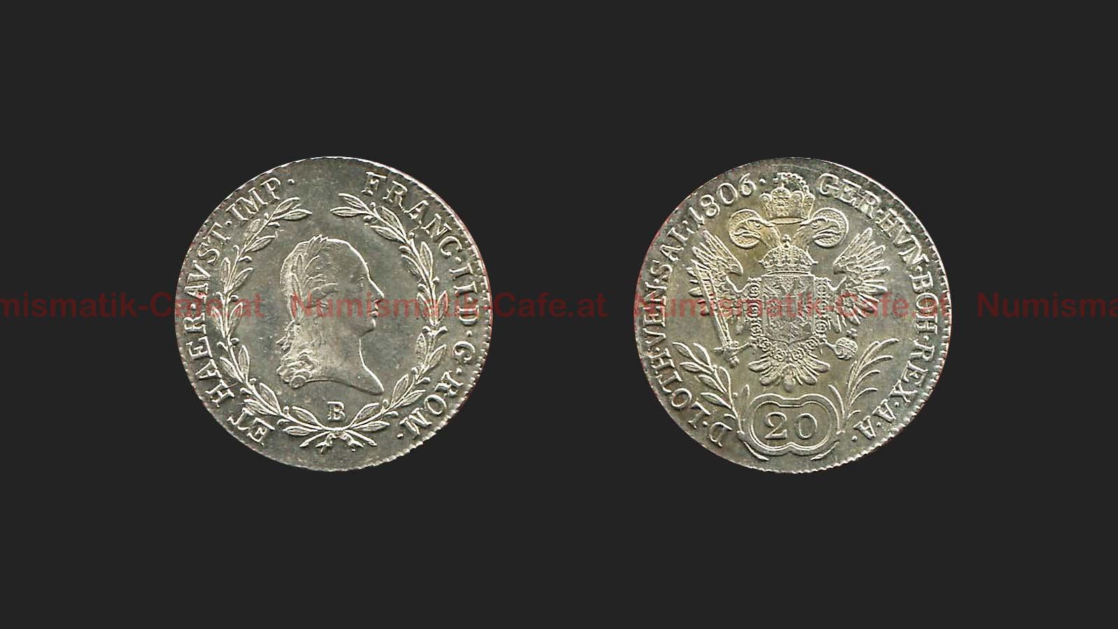 20 Kreuzer 1793 E, 20 Kreuzer 1793 F, 20 Kreuzer 1802 B, 20 Kreuzer 1804 F, 20 Kreuzer 1806, 20 Kreuzer 1806 B S#224-2, 20 Kreuzer 1806 D (Salzburg), 20 Kreuzer 1809 A S#28-1, 20 Kreuzer 1810 A S#28-1, 20 Kreuzer 1817 A Wien, 20 Kreuzer 1830 E, 20 Kreuzer 1831 A (anliegend..., 20 Kreuzer 1831 M (Mailand), 20 Kreuzer 1832 M (Mailand), 20 Kreuzer 1833 C S#76-3