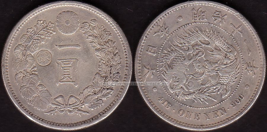 1Yen 1871 Typ 1, 1Yen 1871 Typ 2, 1Yen 1876, HD 1875, HD 1877 27.18g, Meiji 1870 Typ1, Meiji 1870 Typ4, Meiji1874 Typ 3, Meiji1874 Typ4, Meiji1878 Typ1, Meiji1880, Meiji1881, Meiji1882, Meiji1883, Meiji1884, Meiji1885, Meiji1886, Meiji1887 Typ1, Meiji1888, Meiji1889, Meiji1890, Meiji1891, Meiji1892 Typ1, Meiji1892 Typ2, Meiji1893, Meiji1894, Meiji1895, Meiji1896, Meiji1897, Meiji1901, Meiji1902, Meiji1903, Meiji1904, Meiji1905, Meiji1908, Meiji1912
