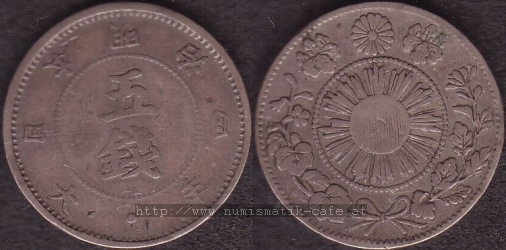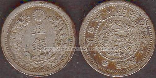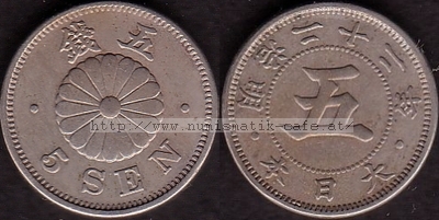 5Sen 1870 Typ1, 5Sen 1871 Typ2, 5Sen1871Typ3, 5Sen1873Typ1, 5Sen1875, 5Sen1876Typ2, 5Sen1877Typ1, 5Sen1889, 5Sen1890, 5Sen1891, 5Sen1892, 5Sen1893, 5Sen1894, 5Sen1895, 5Sen1896, 5Sen1897TypChrysantheme, 5Sen1897TypReisähren, 5Sen1898, 5Sen1899, 5Sen1900, 5Sen1901, 5Sen1902, 5Sen1903, 5Sen1904, 5Sen1905