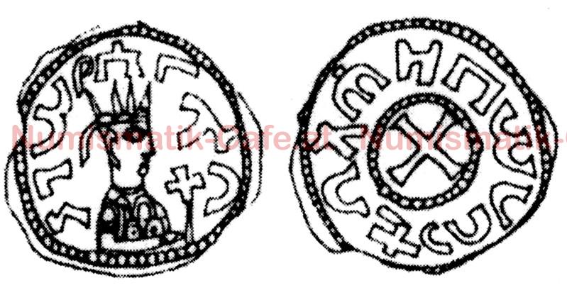 | Bildbeschreibung: | Königreich Axum Israel ca. AD 570 - 580 Cu 0,72 - 1,06 g 16,0 - 17,0 mm H #47 MH # 144 Vorderseite: Gewandbüste des Königs nach rechts in einem Punktkreis, gekrönt mit einer vierzackigen Krone, mit rechts ein Handkreuz haltend, darum links unten beginnend von innen gelesen in Geez: "NEGUS ISRAEL" (König Israel) Rückseite: In einem inneren Punktkreis ein Kreuz (Rundschild), darum in einem äußeren Punktkreis von innen gelesen in Geez: "L'HZB (SCH)HL" (Gnade den Völkern). Im Abschnitt von außen gelesen in griechischen Buchstaben als Ligatur "XC" (nomen sacrum) für Christus. Das ' steht für einen Knacklaut, wie wir ihn im Deutschen zwischen den beiden E's von "beenden" sprechen. Für Sprecher semitischer Sprachen ist dieser Knacklaut ein vollwertiger Konsonant. Abbildung mit freundlicher Genehmigung von Professor Dr. Walter Hahn! |