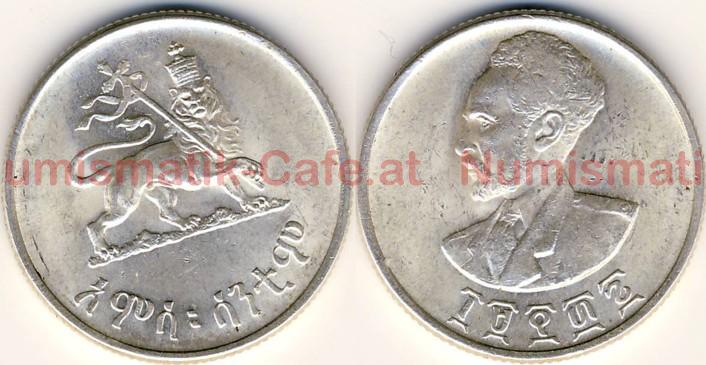 | Bildbeschreibung: | Kaiserreich Äthiopien Haile Selassie EE 1923 - 1967 (AD 1930 - 1974) 2. Regierungszeit EE 1934 - 1967 (AD 1941 - 1974) Äthiopische Währung EE 1937 - 1967 (AD 1944 - 1967) 50 Santeem EE 1936 (AD 1943) KM#37 S#33 Münzstätte Philadelphia Ag (800), 7,00 g 25,0 mm, geriffelter Rand, 1,7 mm dick Die Entwürfe für diese Serie stammen von dem US-Amerikaner Gilroy Roberts, der auch die Kopfseite des Kennedy-Halfdollars gestaltete. Die Silbermünzen zu 50 Santeem, die 1944 und 1945 in der US Mint von Philadelphia geprägt wurden (KM #37, S #33), bestehen aus einer 800er Legierung. Die Stücke, die 1947 ebendort geprägt wurden (KM #37a, S # 33a), bestehen hingegen nur noch aus 700er Silber. Diese beiden Varianten sind auf den ersten Blick nicht leicht zu unterscheiden. Ein erster Hinweis ist schon die Farbe, die bei den Stücken aus der minderen Legierung oft etwas gelbstichig wirkt (siehe oberer Scan rechts). Außerdem sehen die späteren Stücke etwas matter aus, da sie schon deutlich weniger resistent gegen Oxidation sind. Da beide Stücke jedoch gleich schwer sind (7,0 g) und auch den gleichen Durchmesser (25 mm) haben, muss es aber ja einen Unterschied in der Dicke der Prägung geben. Das beigemengte Kupfer hat ja eine geringere Dichte und mehr Volumen als das Silber. Die 800er Prägungen haben eine Dicke von 1,7 mm, diejenigen aus 700er Silber von 1,9 mm. |