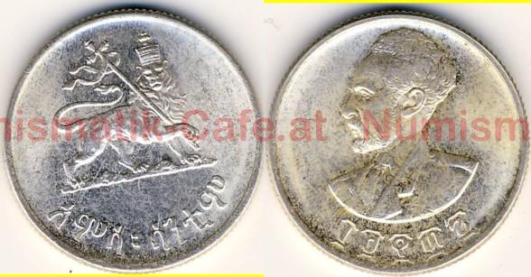 | Bildbeschreibung: | Kaiserreich Äthiopien Haile Selassie EE 1923 - 1967 (AD 1930 - 1974) 2. Regierungszeit EE 1934 - 1967 (AD 1941 - 1974) Äthiopische Währung EE 1937 - 1967 (AD 1944 - 1967) 50 Santeem EE 1936 (AD 1943) KM#37a S#33a Münzstätte Philadelphia Ag (700), 7,00 g 25,0 mm, geriffelter Rand, 1,9 mm dick Die Entwürfe für diese Serie stammen von dem US-Amerikaner Gilroy Roberts, der auch die Kopfseite des Kennedy-Halfdollars gestaltete. Die Silbermünzen zu 50 Santeem, die 1944 und 1945 in der US Mint von Philadelphia geprägt wurden (KM #37, S #33), bestehen aus einer 800er Legierung. Die Stücke, die 1947 ebendort geprägt wurden (KM #37a, S # 33a), bestehen hingegen nur noch aus 700er Silber. Diese beiden Varianten sind auf den ersten Blick nicht leicht zu unterscheiden. Ein erster Hinweis ist schon die Farbe, die bei den Stücken aus der minderen Legierung oft etwas gelbstichig wirkt (Siehe rechtes Bild!). Außerdem sehen die späteren Stücke etwas matter aus, da sie schon deutlich weniger resistent gegen Oxidation sind. Da beide Stücke jedoch gleich schwer sind (7,0 g) und auch den gleichen Durchmesser (25 mm) haben, muss es aber ja einen Unterschied in der Dicke der Prägung geben. Das beigemengte Kupfer hat ja eine geringere Dichte und mehr Volumen als das Silber. Die 800er Prägungen haben eine Dicke von 1,7 mm, diejenigen aus 700er Silber von 1,9 mm. |