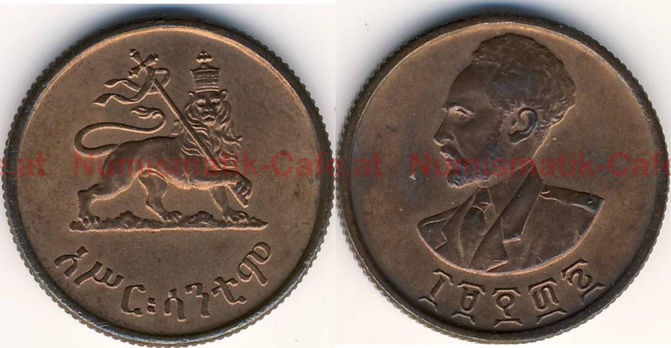 | Bildbeschreibung: | Kaiserreich Äthiopien Haile Selassie EE 1923 - 1967 (AD 1930 - 1974) 2. Regierungszeit EE 1934 - 1967 (AD 1941 - 1974) Äthiopische Währung EE 1937 - 1967 (AD 1944 - 1967) 10 Santeem EE 1936 (AD 1943) KM#34 S#30 Münzstätten Birmingham (Heaton: 4.800.000 im Jahr 1964, 35.200.000 im Jhr 1965 und 100.000.000 im Jahr 1966; King's Norton: ?) oder London (Royal Mint: ?) Cu-Sn (95 Cu, 0 Sn, 5 Zn) 6,20 g 23,0 mm, geriffelter Rand Die Entwürfe für diese Serie stammen von dem US-Amerikaner Gilroy Roberts, der auch die Kopfseite des Kennedy-Halfdollars gestaltete. Die Münzen zu 10 Santeem wurden von 1944 bis 1975 in Birmingham und London geprägt. Dieses Stück stammt ja definitiv aus Birmingham oder London, da es in Philadelphia nicht geprägt wurde. Aber auch von der Tönung käme Philadelphia nicht in Betracht. Vergleichsstück ist ein stempelfrisches Stück des runden 25ers ohne Wellen dieser Serie, der ja nur aus Philadelphia stammen kann. Die Münzen aus Philadelphia enthalten einen gewissen Zinnanteil, der für die leicht rötlich schimmernde Tönung, die Bronzefarbe, entscheidend ist. |