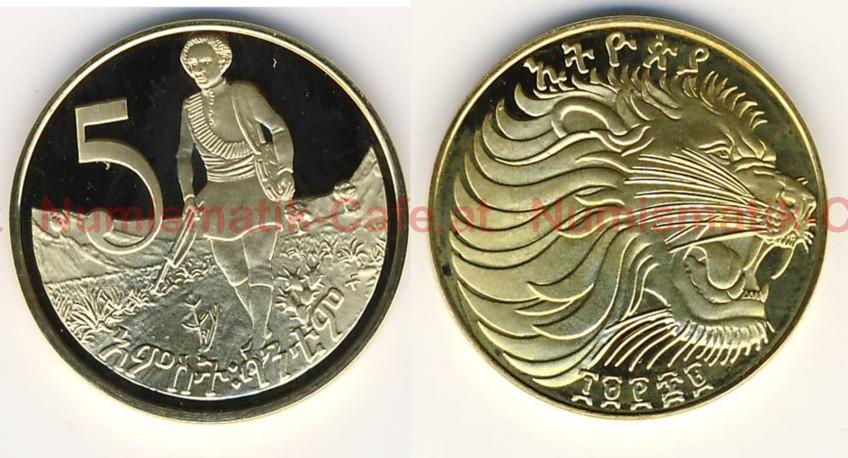 | Bildbeschreibung: | Sozialistisches Äthiopien EE 1969 - 1980 (AD 1977 - 1987) 5 Santeem EE 1969 (AD 1977) Münzstätte Middletown, 11.724 Cu-Zn 3,03 g 20,05 mm, glatter Rand KM #44.3 Die Kursmünzen von EE 1969 wurden in - mindestens - drei verschiedenen Münzstätten geprägt. Die Stücke in Polierter Platte kommen aus Middletown, PA (Franklin Mint). Bei diesen Münzen ist zwischen der Nasenspitze des Löwen und dem Rand der Münze nur ein minimaler Abstand. Bei den Umlaufmünzen, die - mindestens - in Llantrisant und Berlin geprägt wurden, ist ein deutlicher Abstand zu sehen. |