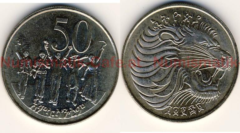 | Bildbeschreibung: | Sozialistisches Äthiopien EE 1969 - 1980 (AD 1977 - 1987) 50 Santeem EE 1969 (AD 1977) Münzstätte Llantrisant Cu-Ni 6,13 g 25,00 mm, geriffelter Rand KM #47.1 Die Kursmünzen von EE 1969 wurden in - mindestens - drei verschiedenen Münzstätten geprägt. Die Stücke in Polierter Platte kommen aus Middletown, PA (Franklin Mint). Bei diesen Münzen ist zwischen der Nasenspitze des Löwen und dem Rand der Münze nur ein minimaler Abstand. Bei den Umlaufmünzen, die - mindestens - in Llantrisant und Berlin geprägt wurden, ist ein deutlicher Abstand zu sehen. Bei den Stücken aus Llantrisant enden über dem mittleren Zeichen der Jahreszahl, der Hundert, zwei der unteren Schnurrbarthaare links und rechts, bei den Stücken aus Berlin endet nur ein Schnurrbarthaar über der Mitte der Hundert. |