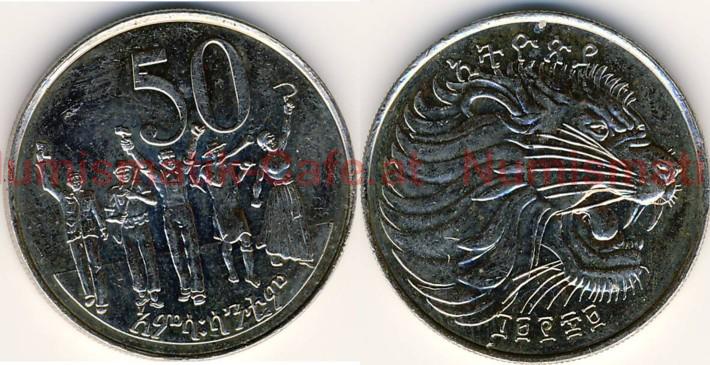 | Bildbeschreibung: | Sozialistisches Äthiopien EE 1969 - 1980 (AD 1977 - 1987) 50 Santeem EE 1969 (AD 1977) Münzstätte Berlin Cu-Ni 6,05 g 25,0 mm, geriffelter Rand KM #47.2 Die Kursmünzen von EE 1969 wurden in - mindestens - drei verschiedenen Münzstätten geprägt. Die Stücke in Polierter Platte kommen aus Middletown, PA (Franklin Mint). Bei diesen Münzen ist zwischen der Nasenspitze des Löwen und dem Rand der Münze nur ein minimaler Abstand. Bei den Umlaufmünzen, die - mindestens - in Llantrisant und Berlin geprägt wurden, ist ein deutlicher Abstand zu sehen. Bei den Stücken aus Llantrisant enden über dem mittleren Zeichen der Jahreszahl, der Hundert, zwei der unteren Schnurrbarthaare links und rechts, bei den Stücken aus Berlin endet nur ein Schnurrbarthaar über der Mitte der Hundert. Bei dieser Münze sind die Unterschiede zu den Prägungen aus Llantrisant eher gering, aber es lassen sich auch hier winzige Details finden. |
