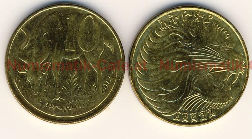 | Bildbeschreibung: | Demokratische Bundesrepublik EE 1984 - heute (AD 1991 - heute) 10 Santim EE 1996 (AD 2003) Münzstätte Royal Mint (Llantrisant, London) Stahl, Me-galv. 4,62 g 23,0 mm, glatter Rand Seit EE 1996 werden die Typen der Kursmünzen von EE 1969 wieder mit aktuellen Jahreszahlen nachgeprägt. Dieses Stück wurde laut WMK in von der Royal Mint geprägt. Da die beiden Stücke zu 5 und 10 Santim jedoch durch ihre schlechte, flaue Prägung auffallen, gibt es gelegentlich Zweifel daran. Als andere Münzstätte wird dann Kremnitz ins Spiel gebracht. |