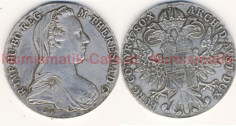 | Bildbeschreibung: | Der Maria-Theresien-Taler 1 Taler AD 1780 Hafner #48 Münzstätte Wien (1865-1900) Ag (833) 28,10 g 40,7 mm Rand: IUSTITIA, Rosette trennt 2 Arabesken, ET, Rosette, 2 Punkte trennen 2 Blätter, Rosette trennt 2 Arabesken, CLEMENTIA, Rosette trennt 2 Arabesken, 2 Punkte trennen 2 Blätter, Rosette. Dieser Typ wurden höchstwahrscheinlich von General Napiers Truppen benutzt, als sie AD 1868 vom - heute in Eritrea liegenden - Hafen Zula am Roten Meer aus nach Magdala, der Festung des Kaisers Tewodros, vordrangen. Das Ziel war die Befreiung der europäischen Geiseln, die Tewodros nach und nach "ansammelte". Siehe: http://de.wikipedia.org/wiki/Schlacht_um_Magdala Der Marsch Napiers nach Magdala lässt sich auf der folgenden Landkarte gut nachvollziehen: gallery/image_page.php?album_id=905&image_id=4975 Die früheren Taler aus Wien lassen sich am Rand unterscheiden: An der Arabeske lässt sich erkennen, dass die Münze vor 1900 geschlagen wurde. Hinter dem ET befinden sich ein oder zwei Punkte (1 Punkt hinter dem ET = 1853 - 1865, 2 Punkte hinter dem ET = 1865 - 1900). Ist das Wort IUSTITIA 17mm lang und das Wort CLEMENTIA 19/20 mm lang handelt es sich um Hafner #49. Ist das Wort IUSTITIA 14mm lang und das Wort CLEMENTIA deutlich länger handelt es sich um Hafner #50. |
