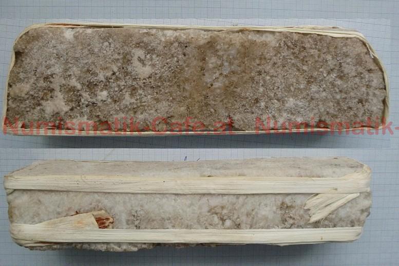 | Bildbeschreibung: | Zum Thema "Amoli" hat Afrasi ja unter #NZ01 schon alles geschrieben. Jedenfalls alles, was ich darüber weiß. Ich möchte meinen Salzbarren an dieser Stelle aber trotzdem vorstellen, obwohl er dem Exemplar von Afrasi sehr ähnlich sieht. Aber diese Dinger sind ja alles Unikate. Das Gewicht kann ich leider nicht bestimmen. Dafür ist es zu schwer. Es wird wohl um die 1 kg sein. Meine Münzwaage meldet nur "tilt". Die Abmessungen sind jedenfalls 24 x 6 x 4,5 cm. Afrasi hat mir geschrieben, daß es sich um ein "Randstück" handelt. Wir sind hier aber leider nicht bei den Briefmarkensammlern, sonst wäre der Brocken vielleicht sogar noch besonders zu bewerten. |
