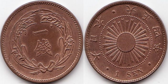| Bildbeschreibung: | 1 Sen 1915 Reisrispen Material: Kupfer 950 / Zinn 40 / Zink 10 Durchmesser: 27,87mm Gewicht: 7,13g Randschrift: Keine Auflage: 13,000,000 Kat.-Nr.: Schön: 13 KM: 35 JNDA: 01-47 |