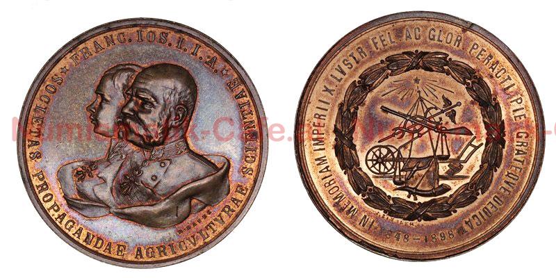 | Bildbeschreibung: | Notiz: von R.Batik und Zimbler. Auf die Wohltätigkeitslotterie, die anlässlich des 50. Regierungsjubiläum des Kaisers vom Klub zur Verbesserung landwirtschaftlicher Kenntnisse veranstaltet wurde, um damit ein Waisenhaus für Militärwaisen errichten zu können. DM: 41 mm Gewicht (g): 19,97 Katalog: Hauser 962 www.moneta.at |