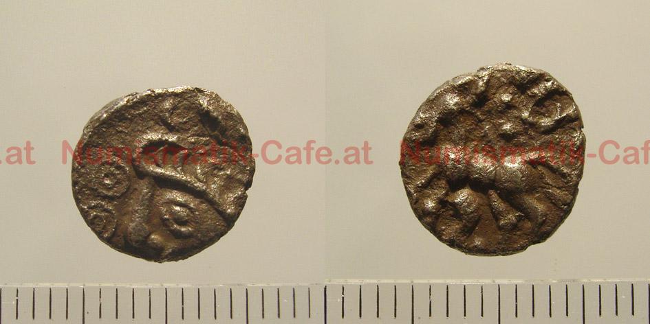 | Bildbeschreibung: | Südengland / Atrebates Commios lazy E-Type Van Arsdell 355-3 silver unit, 0,98 g AV: Kopf mit Leiter-Haar nach links, davor 2 Doppel-Ringe RV: Pferd nach links, darunter Monogramm-artiges Zeichen FO: Tangmere, West Sussex, Mai 2001 Chris Rudd, Liz´s List 14, No 22 (CR 8253); ebay item 8321207995 Celtic Coin Index: 04.0232 http://www.finds.org.uk/CCI/details.php ... um=04.0232 zur Person des Commius: http://de.wikipedia.org/wiki/Commius |