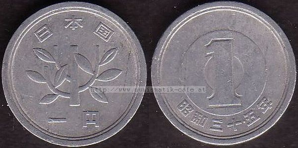 | Bildbeschreibung: | 1 Yen 1960 Material: Aluminium 1000 Durchmesser: 20mm Gewicht: 1,00g Randschrift: keine Auflage: 300.000.000 Kat.-Nr- Schön: 48 KM: 74 JNDA 02-11 |