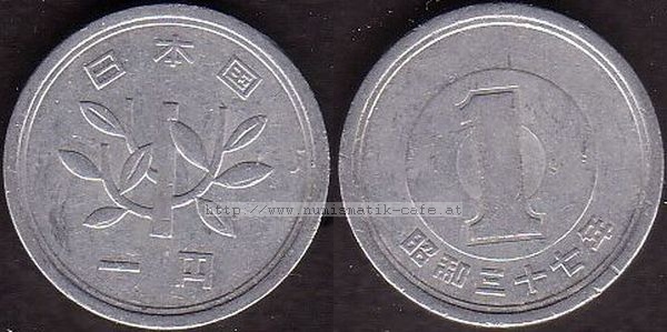 | Bildbeschreibung: | 1 Yen 1962 Material: Aluminium 1000 Durchmesser: 20mm Gewicht: 1,00g Randschrift: keine Auflage: 572.000.000 Kat.-Nr- Schön: 48 KM: 74 JNDA 02-11 |