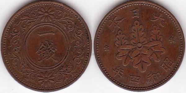 | Bildbeschreibung: | 1 Sen 1929 Blauglockenbaum (Paulownia) Material: Kupfer 950 / Zinn 40 / Zink 10 Durchmesser: 23,03mm Gewicht: 3,75g Randschrift: keine Auflage: 3,000,000 Kat.-Nr.: Schön: 24 KM: 47 JNDA: 01-48 |