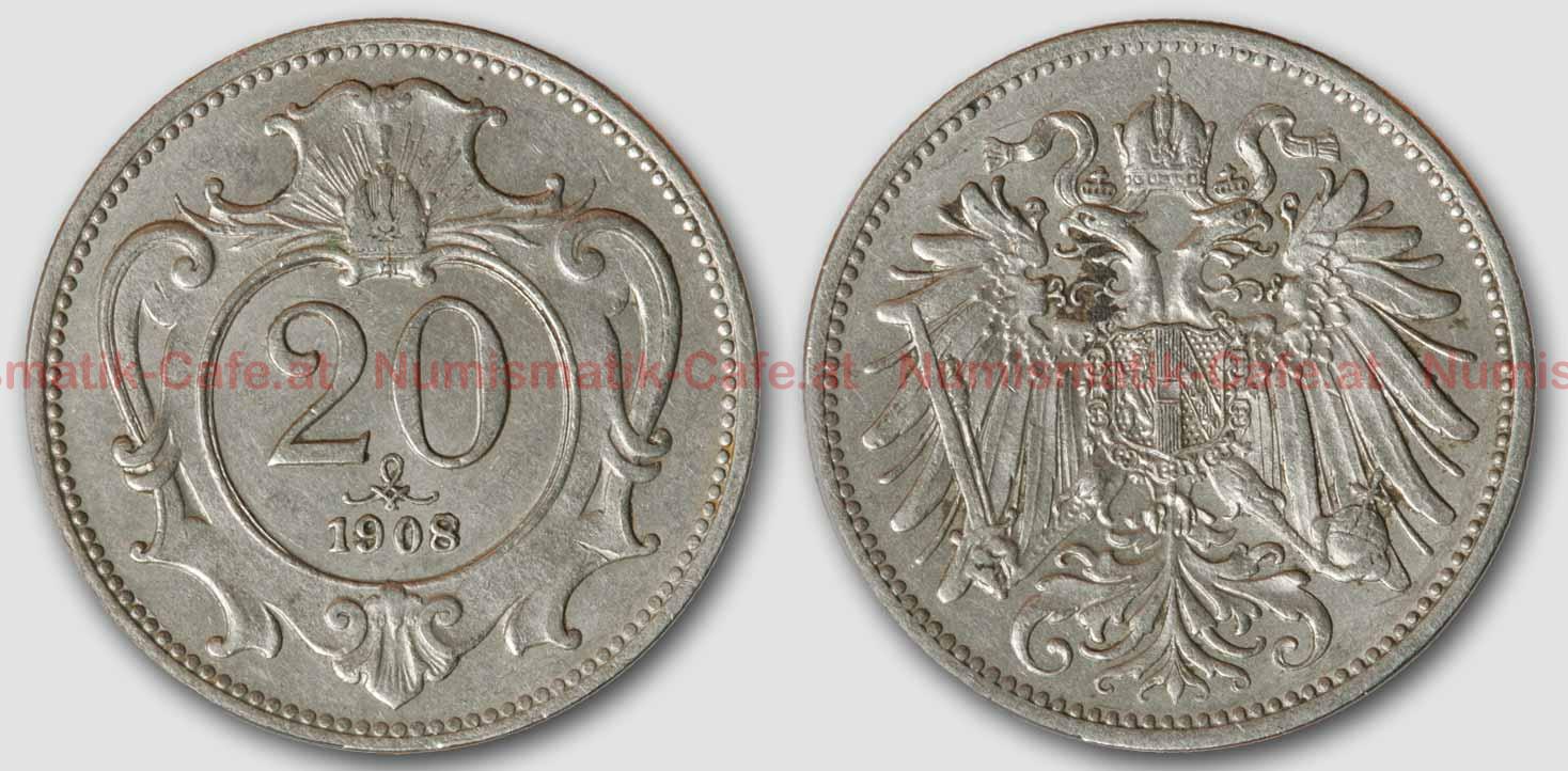 | Bildbeschreibung: | 20 Heller, 1908 Nickel, 21mm, 4,0g geprägt: 1892-1895, 1907-1909, 1911, 1914 VS: Wertangabe in "dekorativem Rahmen" (@KM. "Decorative shield"), Wertangabe RV: Gekrönter Doppeladler mit dreifeldigem Brustschild des Hauses Habsburg-Lothringen S#6 KM#2803 ANK#65 |