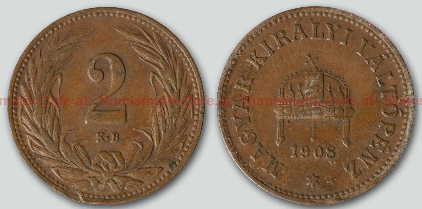 | Bildbeschreibung: | 2 Filler, 1908 KB geprägt: 1892-1910, 1914, 1915 Bronze, 19mm, 3,3g VS: Wertangabe in unten gebundenem Kranz, Münzstätte RS: Stephanskrone mit seitlichen Kettengehängen (Pendilien), Jahreszahl, MAGYAR KIRÁLYI VÁLTO PENZ (königlich ungarische Scheidemünze) S#117 ANK#98 KM#2183 |