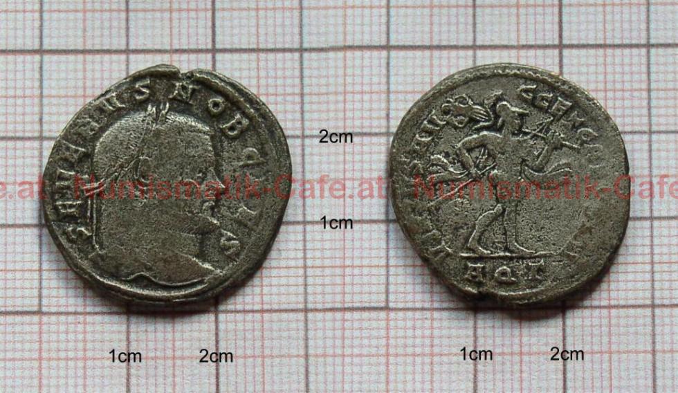 | Bildbeschreibung: | Follis/AQVILEIA A) SEVERVS NOB CAES Belorbeerter Kopf nach rechts R) VIRTVS AVGG ET CAESS NN Abs.: AQΓ Mars geht nach rechts, trägt Lanze mit Trophaion Gewicht:9,4g Ø:29mm Referenz:RIC VI/70a gepr.305 |