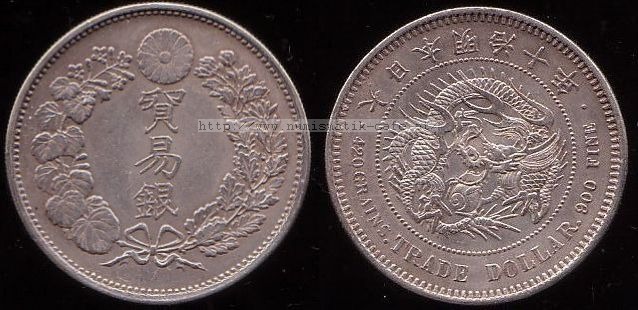 | Bildbeschreibung: | 1 Handelsdollar 1877 Material: Silber 900 / Kupfer 100 Durchmesser: 38,58mm Gewicht: 27,22g Randschrift: Keine / Riffelrand Auflage: alle Jahrgänge (1875-77) zusammen = 3,056,638 Kat.-Nr.: Schön: 6 KM: A25 JNDA: 01-10A |