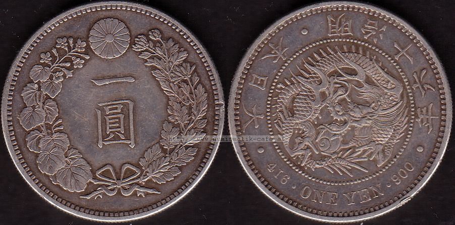 | Bildbeschreibung: | 1 Yen 1883 Material: Silber 900 / Kupfer 100 Durchmesser: 38,58mm Gewicht: 26,96g Randschrift: Keine / Riffelrand Auflage: 3,636,678 Kat.-Nr.: Schön: 6 KM: A25 JNDA: 01-10 |