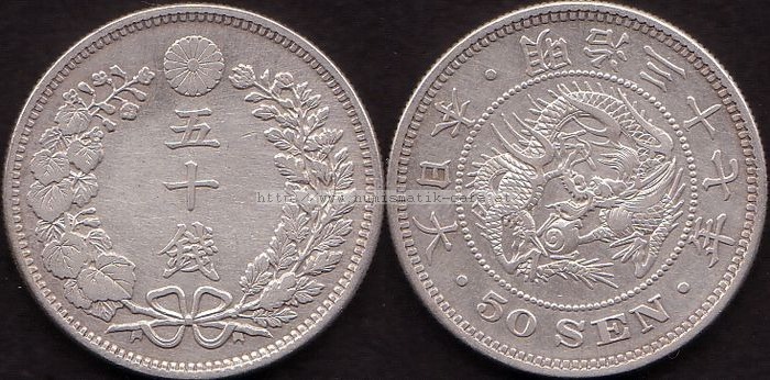 | Bildbeschreibung: | 50 Sen 1904 Drachen Material: Silber 800 / Kupfer 200 Durchmesser: 31,0mm Gewicht: 12,50g Randschrift: Keine / Riffelrand Auflage: 5,373,652 Kat.-Nr.: Schön: 5 KM: 25 JNDA: 01-14 |