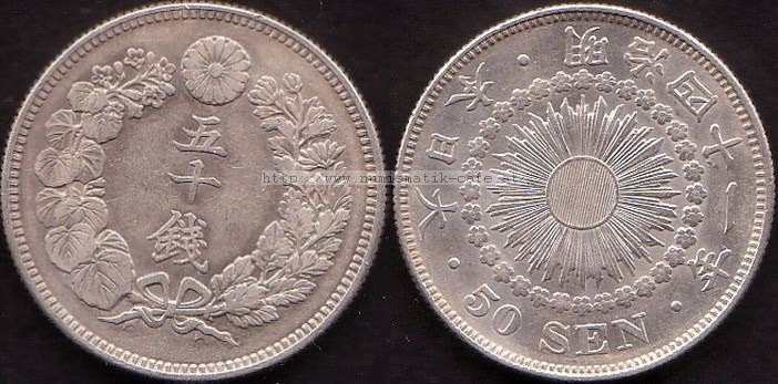 | Bildbeschreibung: | 50 Sen 1908 Sonne Material: Silber 800 / Kupfer 200 Durchmesser: 27,27mm Gewicht: 10,13g Randschrift: Keine / Riffelrand Auflage: 25,470,371 Kat.-Nr.: Schön: 9 KM: 31 JNDA: 01-15 |