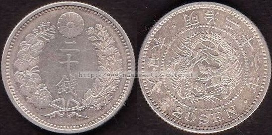 | Bildbeschreibung: | 20 Sen 1888 Drachen Material: Silber 800 / Kupfer 200 Durchmesser: 23,50mm Gewicht: 5,39g Randschrift: Keine / Riffelrand Auflage: 703,920 Kat.-Nr.: Schön: ? KM: 24 JNDA: 01-21 |
