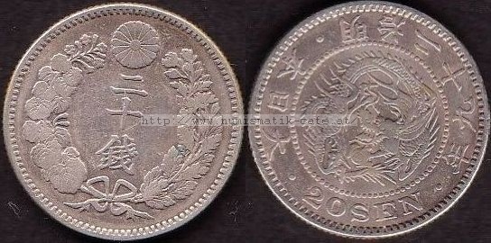 | Bildbeschreibung: | 20 Sen 1896 Drachen Material: Silber 800 / Kupfer 200 Durchmesser: 23,50mm Gewicht: 5,39g Randschrift: Keine / Riffelrand Auflage: 2,599,340 Kat.-Nr.: Schön: ? KM: 24 JNDA: 01-21 |