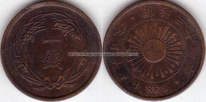 | Bildbeschreibung: | 1 Sen 1898 Reisähren Material: Kupfer 950 /Zinn 40 / Zink 10 Durchmesser: 27,87mm Gewicht: 7,13g Randschrift: Keine / glatt Auflage: 3,649,448 Kat.-Nr.: Schön: ? KM: ? JNDA: 01-47 |