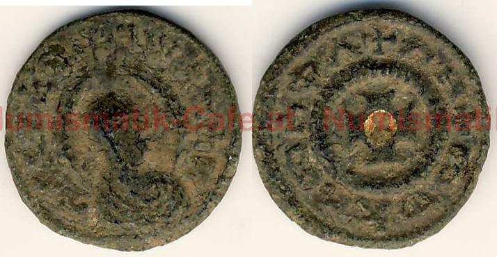 | Bildbeschreibung: | Mehadeyis (MHDYS) ca. AD 400 - 450 Cu 1,38 g 14,6 - 14,7 mm MH # 70 |