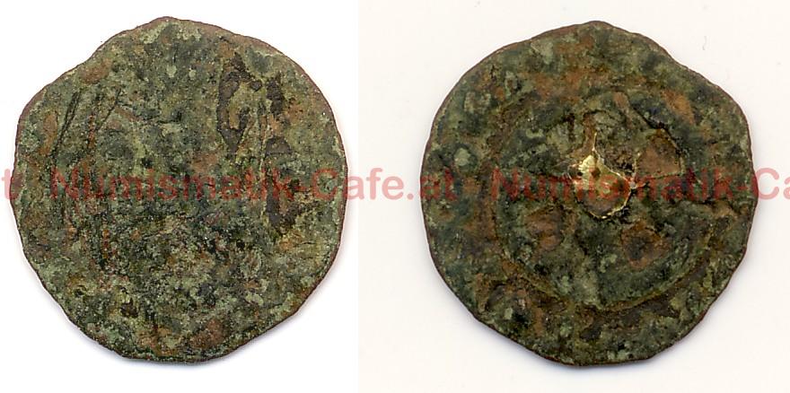| Bildbeschreibung: | anonymus (eventuell Nezana oder/und Ousana) ca. AD 450 - 500 Cu 0,38 g 11,9 – 12,3 mm MH #76 |