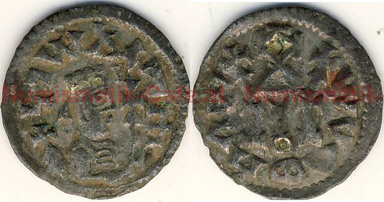| Bildbeschreibung: | Königreich Axum Armeh ca. AD 540-560 Ag 1,36 g mit feuervergoldeten Bereichen ca. 16,4 - 16,7 mm H #71.2 MH #151 Hahns Untertypen 1 und 2 beziehen sich auf die Form der Krone. Die Zeichnung im Hahn zeigt zu diesem Untertyp einen Rundbogen und eine kurze Kronenkette, die Münze oben hat einen Spitzbogen und eine lange Kronenkette. |