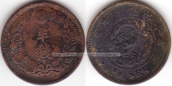 | Bildbeschreibung: | 1/2 Sen 1877 Typ 2 Material: Kupfer 980 /Zinn 10 / Zink 10 Durchmesser: 22,20mm Gewicht: 3,56g Randschrift: Keine / glatt Auflage: zusammen mit Typ 1 = 29,278,520 Kat.-Nr.: Schön: ? KM: ? Yeoman:16 JNDA: 01-53 V-förmige Drachenschuppen |