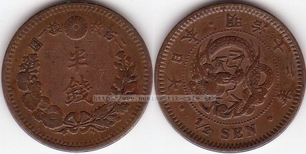 | Bildbeschreibung: | 1/2 Sen 1879 Material: Kupfer 980 /Zinn 10 / Zink 10 Durchmesser: 22,20mm Gewicht: 3,56g Randschrift: Keine / glatt Auflage: 29,963,706 Kat.-Nr.: Schön: ? KM: ? Yeoman:16 JNDA: 01-53 |
