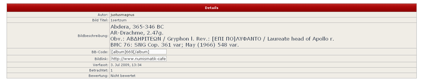 mal eine Idee: Wäre die Einrichtung eines öffentlichen Albums mit dem Titel "Fälschungen" und ein paar Unterkategorien, für den Anfang vielleicht "Antike" und Moderne" nicht eine gute Sache?