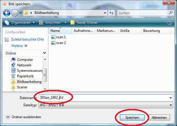 Schritt 5: öffnen des Bildes welches bearbeitet werden soll (Scan1) mittels doppeklick auf das Bild. (übrigens hat sich praktischer Weise mit dem Speichern von Bildern im Pfad eine Bildvorschau im Betrachterfenster geöffnet -vorheriges Bild unten) Schrit 6: mit der Maus auf das Bild klicken und mit gedrückter linker Maustaste ein Auswahlrahmen erzeugen. An den schwarzen Punkten des Rahmens können wir das Fenster Größenmäßig genau an die Münze anpassen. Dateianhang: Dann unter Menüpunkt "Bearbeiten", "Zuschneiden" das Bild auf den Auswahlrahmen "stutzen". Das Ergebniss sieht im Idealfall etwa so aus: Dateianhang: Schritt 7: Einstellen der Größe des Bildes: Unter Menü "Bild", Größe ändern" die gewünschte Größe des Bildes angeben( ein Fenster öffnet sich). (400 Pixel Bildbreite sind eigentlich ausreichend (ausprobieren ist hier angebracht, damit mann herausbekommt was jeweils am zweckmäßigsten ist - ich habe hier zur Demonstration 600 Pixel gewählt) Dateianhang: Dateianhang: Schritt 8 speichern des Bildes als JPEG-Datei: Dazu unter Menüpunkt "Datei", "exportieren" anklicken Dateianhang: