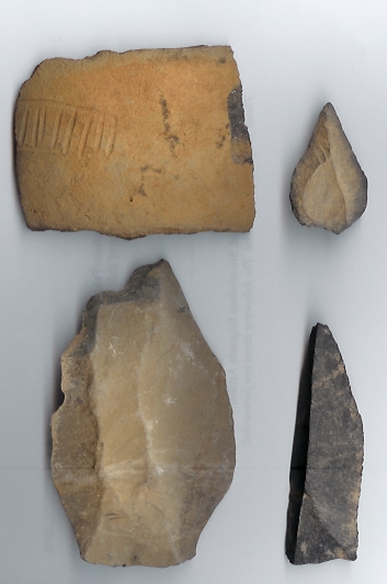 Zu deinem Bild, wenn ich mal raten darf, ein Schaber, ein Schneidwerkzeug und eine Pfeilspitze. Zum Alter der Sachen: ??? Jedenfalls älter als 2500 Jahre. ;)