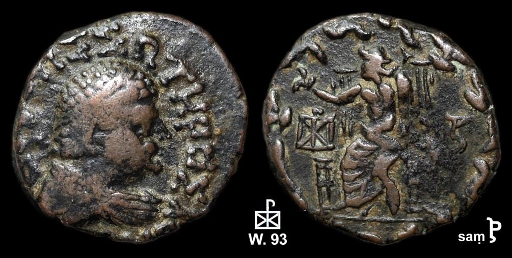Sasan heißt es bei Mitchiner ( ACW # 2593-96), er sei ein Neffe von Asparavarma, dem Vizekönig im heutigen Pakistan gewesen. Geprägt wurde das Stück in Taxila.