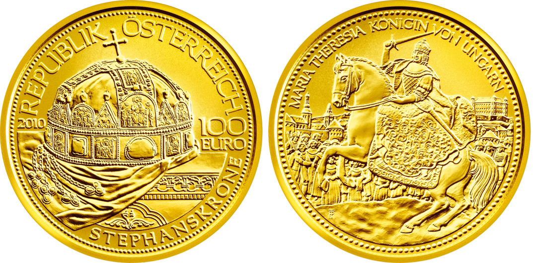 MARIA THERESIA UND DIE MAGISCHE STEPHANSKRONEGold ist gefragt, wie schon lange nicht. Das betrifft vorrangig Goldmünzen zur Geldanlage. Daneben gibt es aber auch Goldstücke, bei denen der künstlerische Wert, das Augenmerk auf jedes Detail und eine Hightech-Prägequalität den Ton angeben. Die neue 100-Euro-Münze „Stephanskrone von Ungarn“ aus 16 Gramm Gold, die dritte aus der Reihe „Kronen der Habsburger“, ist ab 10. November in den Banken, Sparkassen, im Münzhandel sowie den Shops der Münze Österreich erhältlich.