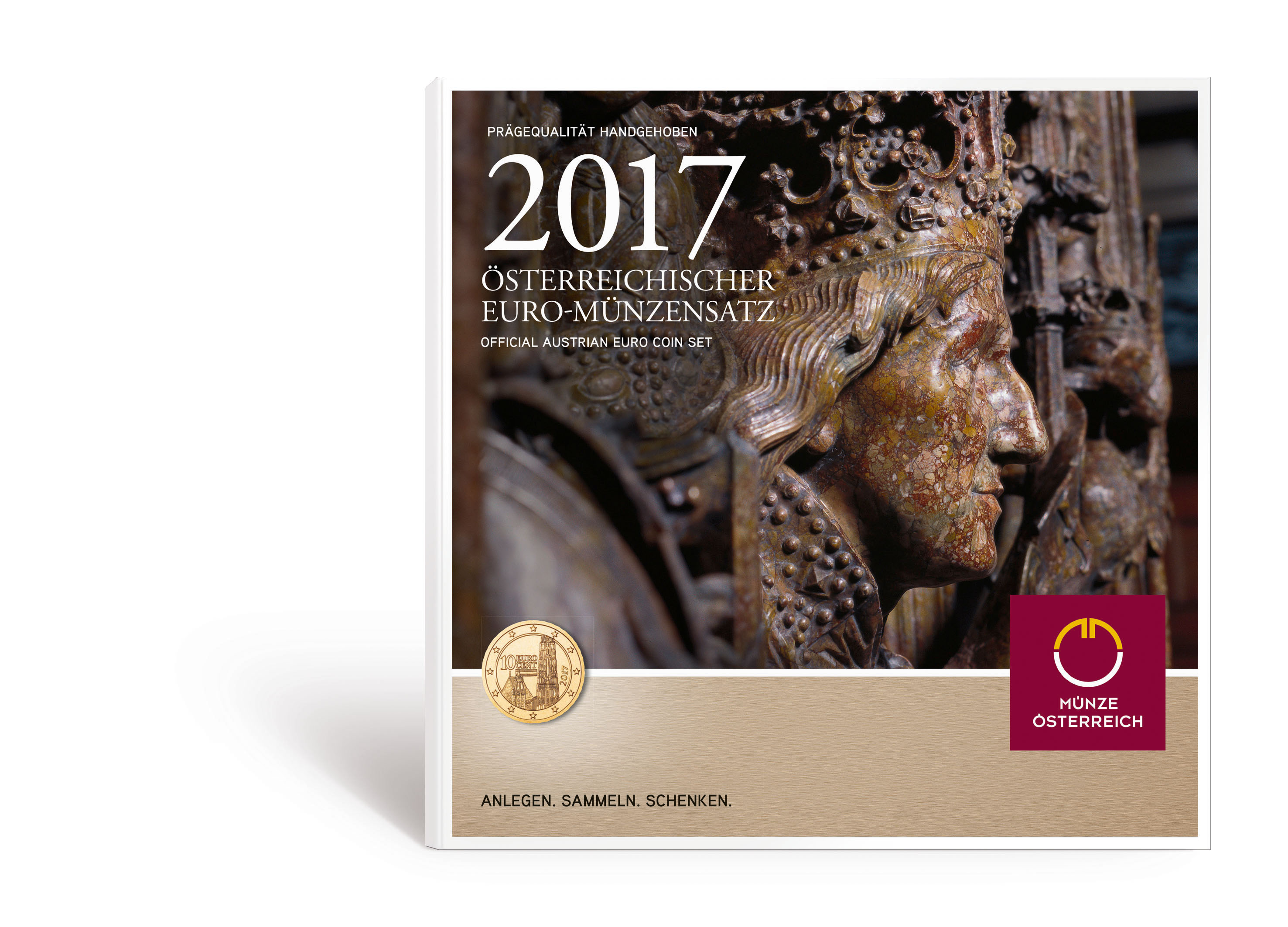 Der Euro-Münzensatz 2017 enthält die acht Geldstücke von 1 Cent bis 2 Euro mit Datum 2017. Vermutlich werden nicht alle Werte mit Jahreszahl 2017 auch für den Umlauf geprägt, was den Satz zusätzlich interessant macht. Der Satz kommt in einer Blisterverpackung, deren Design dem „Friedrichsgrab“ gewidmet ist. Die sterblichen Überreste Friedrichs III. (1415 – 1493) ruhen in diesem Grabmal, befindlich im Apostelchor des Wiener Stephansdoms, das vor exakt 500 Jahren, 1517, fertiggestellt wurde.