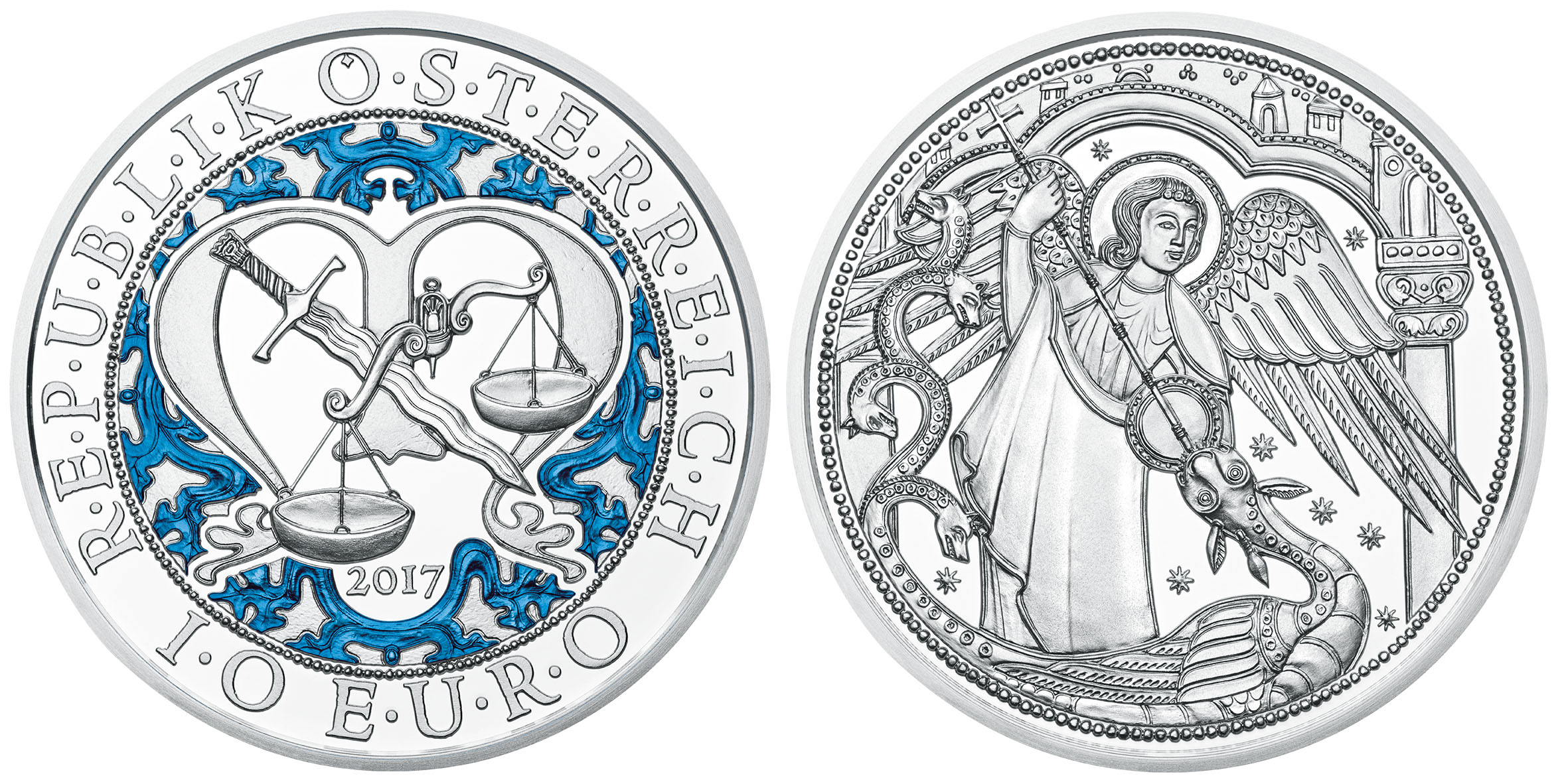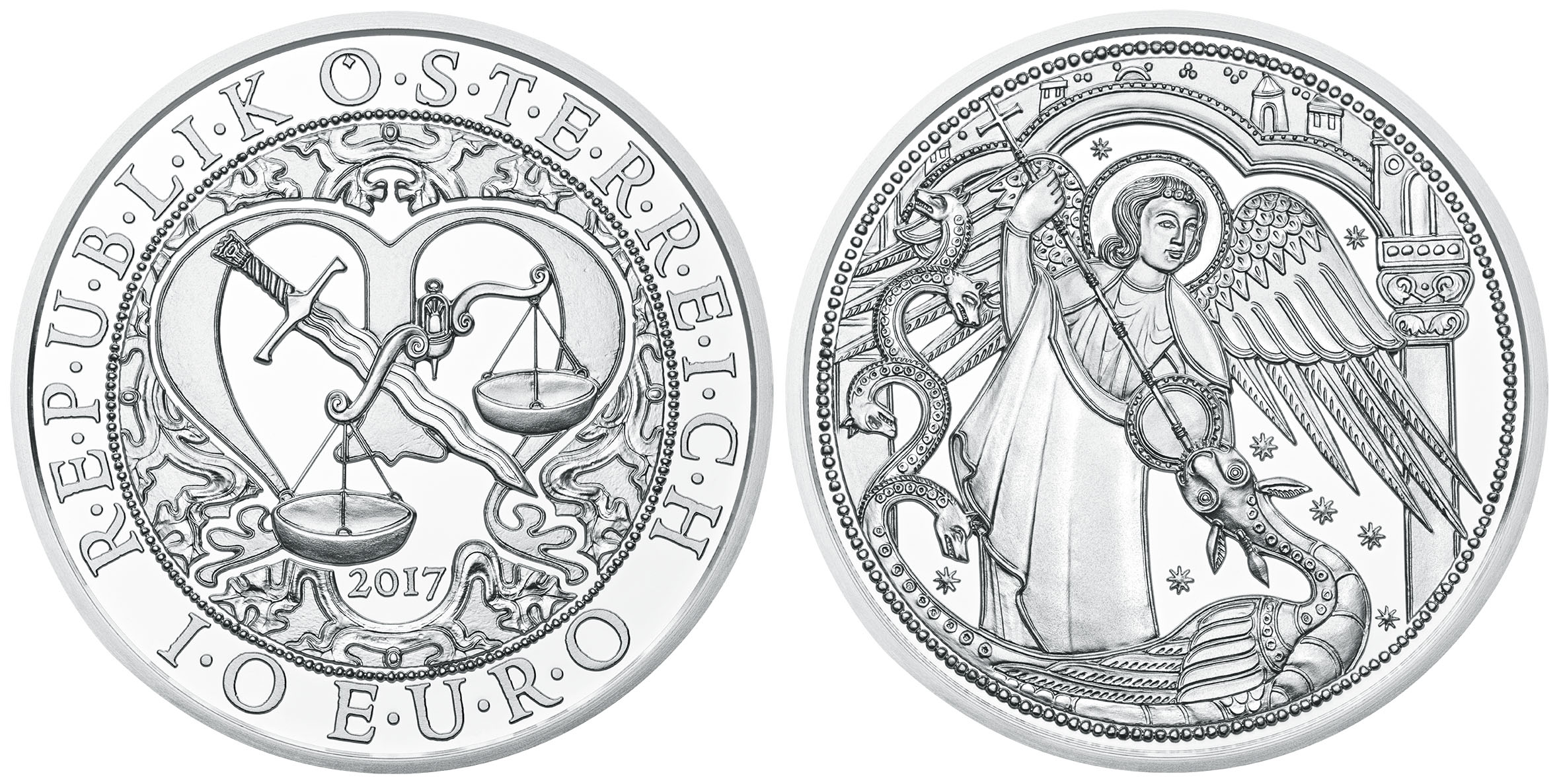 Die 10-Euro-Silbermünzen erscheinen erstmals mit einem Gewicht von ½ Unze Silber (Ag 925). Weiters wird die 10-Euro-Münze „Michael - Der Schutzengel“ aus Kupfer als Normalprägung zum Nennwert angeboten. Zur sicheren Unterscheidung ist der Rand der Kupfermünzen glatt mit Rippen, jener der Silbermünzen glatt.
