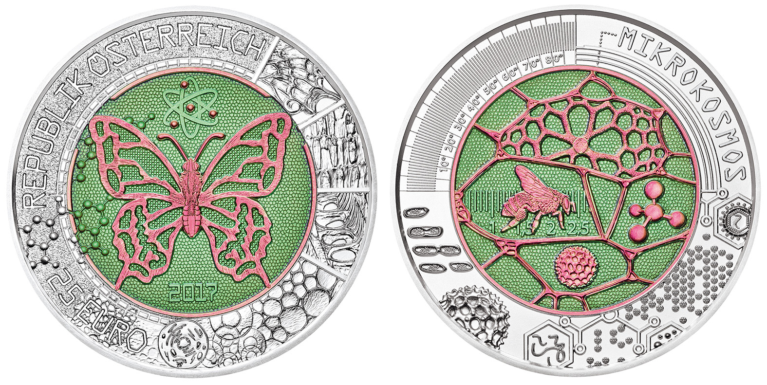 Die Silber-Niob-Münze 2017 ist dem Thema „Mikrokosmos“ gewidmet. Sie ist ausschließlich in der Qualität „Handgehoben“ und in einer maximalen Auflage von 65.000 Stück geprägt. Jede Münze kommt im Etui mit nummeriertem Echtheitszertifikat.