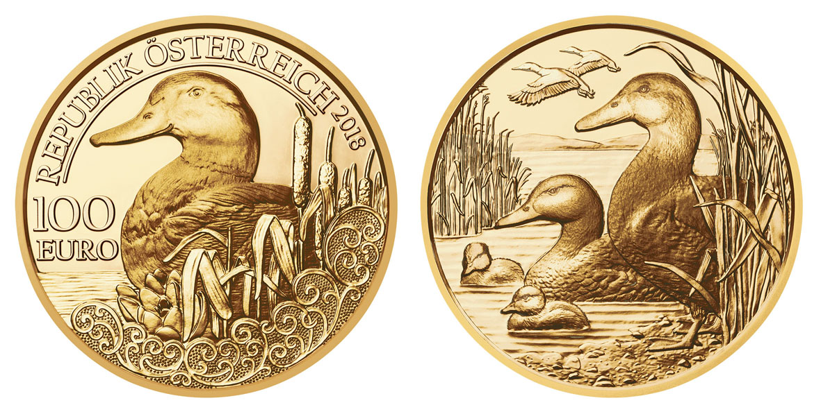 Ebenfalls am 3. Oktober erscheint die neue 100-Euro-Goldmünze „Die Stockente“, die letzte Münze aus der Serie „Unseren Wildtieren auf der Spur“