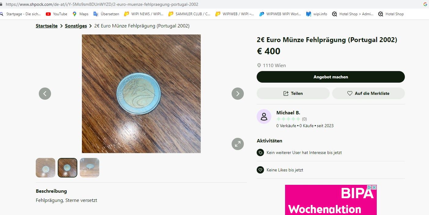 Überall wie Shpock, Willhaben, ebay etc werden Euromünzen mit Fehlprägung angeboten !
