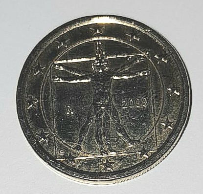 Die Münze war Teil einer Geldrolle, sie ist unzirkuliert. Normalerweise ist ja nur der Rand aus einer Kupferlegierung, hier ist es die ganze Münze.
